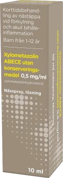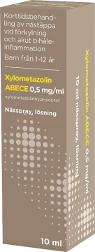 Xylometazolin ABECE är ett receptfritt läkemedel med xylometazolinhydroklorid och används för korttidsbehandling av nästäppa vid förkylning och akut bihåleinflammation. Xylometazolin Abece ska inte användas längre än 10 dagar i följd. Läs alltid bipacksedeln innan användning.