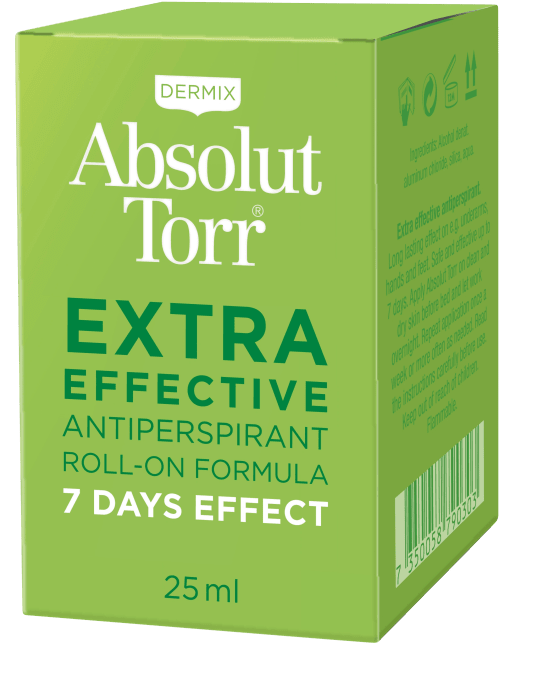 Absolut Torr Roll-On är en extra effektiv antiperspirant som motverkar svett och dålig lukt upp till sju dagar. Kan användas mot alla typer av svettningar, så som armsvett, handsvett och fotsvett. Rekommenderas även vid besvär med överdriven svettning, så kallad hyperhidros. Unisex, doftfri formula. Passar alla hudtyper. Parfymfri. 25 ml.