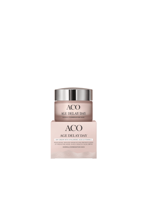 ACO Age Delay Daycream Normal skin Parf är en djupt återfuktande dagkräm med anti-age egenskaper. Ansiktskrämen hjälper till att minska rynkor och motverka tidiga ålderstecken som kan uppstå. Passar normal och kombinerad hud. SPF 15. 50ml.