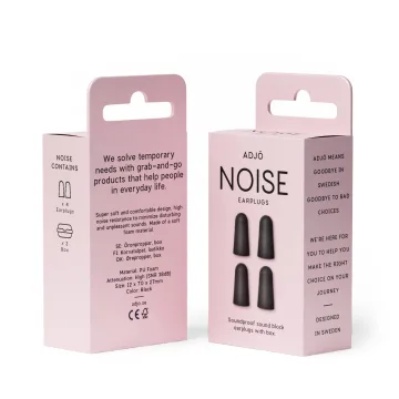 ADJÖ NOISE Earplugs är ett par öronproppar som ger en effektiv dämpning av omgivande ljud, upp till 32 dB vid användning. Öronpropparna har en ergonomisk design för att minska obehag vid långvarigt bruk. Perfekta för sömn, resor, studier eller skydd mot höga ljud. 4 st.