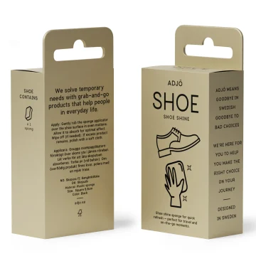 ADJÖ SHOE Shoe Shine är en praktisk svamp som ger hög glans till läder och syntetiskt skinn. SHOE är en kompakt skoputsningssvamp som håller dina skor fräscha och polerade.