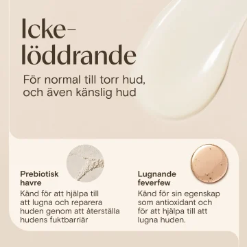 - Innehåller prebiotisk havre som återställer hudens fuktbarriär