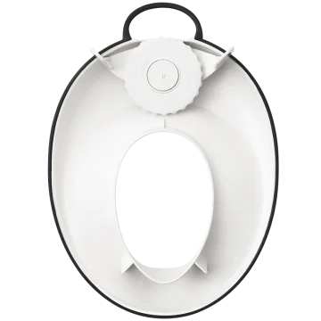 BabyBjörn Toalettsits Vit/Svart är en ergonomisk och stadig toalettsits som passar de flesta toaletter. Toalettsitsen är bekväm att sitta på och barnet kan enkelt lägga den på toaletten själv. Sitsen är försedd med stänkskydd som förhindrar spill samt gummilist och justering på undersidan. Designad med handtag för att kunna hängas upp när den inte används. Stabil sits i klassisk vit färg och med svart färgdetalj. Passar från cirka 2 år.
