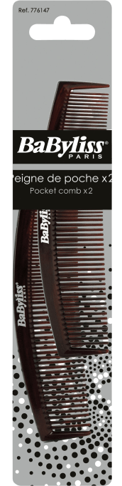 Babyliss fickkam är en liten kam i klassisk modell som slätar till frisyren. Praktisk att ha med i väskan eller fickan. 2-pack.