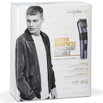 BaByliss Hårklippare Tiotanium E976E är en hårklippare som har blad i kol/titan med mycket god skärprestanda. Den har 26 klipplängder mellan 0,5–25 mm som enkelt ställs in med ett vridhjul. Hårklipparen kan användas med eller utan sladd, den funkar i 60 minuter i sladdlöst läge. Löstagbart och tvättbart blad som underlättar rengöringen. Skäggkam och hård förvaringsväska medföljer.