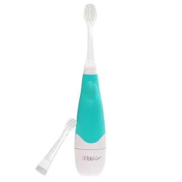 Bblüv Ultrasonic Eltandborste 0 mån+ är en eltandborste för barn. Tandborsten, som drivs av ett AAA-batteri, har mjuka vibrationer och borstar barnets tänder på ett skonsamt sätt. Är utrustad med LED-ljus som gör det möjligt att se bättre i barnets mun. Har tvåminuters timer och ger en pulsering var 30:e sekund. Två tandborsthuvuden medföljer, det ena för 0-18 månader och det andra för 18 mån+. Ett batteri ingår. Passar barn från 0 månaders ålder.