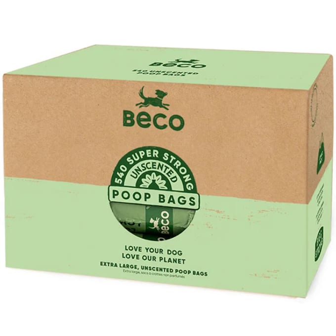 Beco Bajspåse är ett flerpack hundbajspåsar som är stora, slitstarka och läckagesäkra. Bajspåsen är 22,5x33 cm stor och är extra lång samt kraftig för att skydda händerna. Varje rulle med påsar är tillverkad av 40% återvunnet material och har en kärna av återvunnen kartong. Passar i standard bajspåsehållare. Innehåller 36 rullar med 15 gröna påsar per rulle. 540-pack.