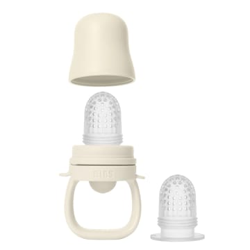 BIBS Baby Feeder är en praktisk smaktestare som låter dig introducera nya smaker för ditt barn. Smaknappen är även en smart lösning för att lindra ömma tandkött vid tandsprickning. Den mjuka och flexibla silikonnappen har små öppningar som fungerar som en sil, vilket gör att vätska och små bitar långsamt kan sippra igenom. Kan med fördel fyllas med fryst bröstmjölk eller ersättning för att lindra obehag vid tandsprickning. Om du vill introducera nya smaker kan du istället fylla den med små bitar av frukt och mjuka grönsaker. Innehåller 2 silikonnappar. Designad i Danmark. BPA-fri. Passar barn från 4 månader.