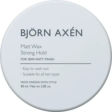 Björn Axén Matt Wax Strong Hold är ett matt och torrt hårvax med mycket stadga, för en rufsig matt styling i kort eller längre hår. Vaxet kan användas både i fuktigt handdukstorkat hår eller i torrt hår. Det är hårt med mycket stadga men ändå lätt att tvätta bort. Den lätta doften av jasmin, vanilj och citrus passar även dig som är känslig då det är en hypoallergenic parfym. Hårvaxet innehåller UV-filter som skyddar hårfärgen och hårets kvalitet. 80 ml.