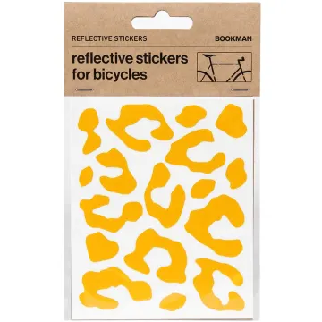 Bookman Reflective Stickers Leopard Print Yellow är reflexklistermärken i gult leopardmönster. Reflekterande klisterlappar som ökar synligheten i mörkret och kan klistras på exempelvis cykel, hjälm, barnvagn eller annat som behöver lite extra synlighet. Ger ett unikt intryck och designdetalj i både ljus och mörker. Tillverkade i 3M Scotchlite reflexmaterial. 1st ark klisterlappar (9,5x11,5 cm). Skapa unika mönster som fästes på cykel, hjälm, barnvagn mm som behöver lite extra synlighet i mörkret.