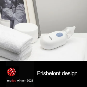 Braun Elektrisk Nässug rensar barnets näsa frå nsekret och snor. Den passar både för spädbarn och småbarn. Nässugen drivs av batterier. Den är hygiensisk då alla delar utan enheten går att diska i maskin.