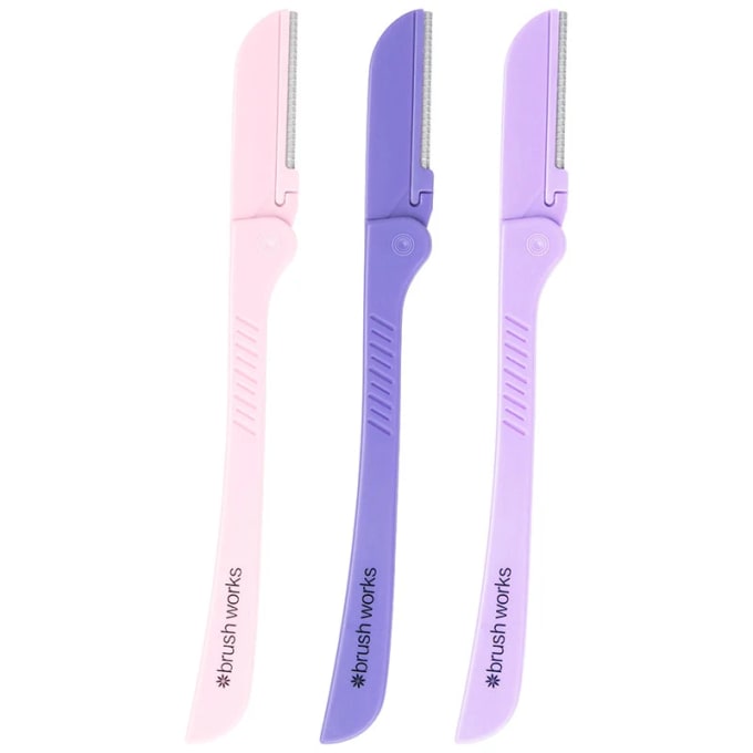 Brushworks Precision Eyebrow Razors innehåller tre ögonbrynsknivar som används för att forma ögonbrynen med perfekt precision. Microfina blad i rostfritt stål ger en jämn rakning. Med vikbar design som skyddar bladet då det inte används. Kan även användas på överläpp, haka och bikinilinje för att avlägsna oönskad hårväxt.