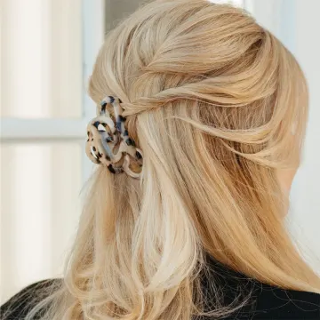 ByBarb Hårklämma Judy Sköldpaddsfärgad är franskinspirerad hårklämma i spräckliga jordnära färger och dekorativa former. Hårklämma med rejäl fattning som håller håret på plats och kan bäras på flera sätt. Vacker hårklämma i acetat som passar dig både med långt eller halvlångt hår. Bekvämt plastgrepp som gör den skonsam mot håret. Mått: 8,5 x 4 cm.