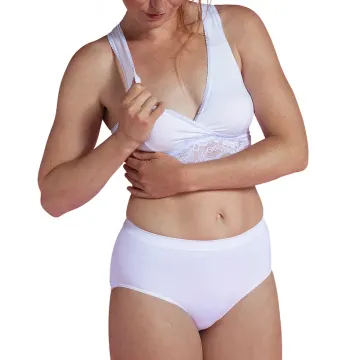 Carriwell Amningsbh Omlott Eko är en mjuk amningsbh i följsam omlottdesign. Materialet med tyg och spets är flexibelt och mjukt och behån har inget spänne eller andra hårda detaljer så därför passar den både för att användas på dagen och när du sover eller ammar ditt barn på natten. Ryggen är i brottarmodell vilket ger stöd och avlastar tryck från axlarna. Tillverkad av ekologisk bomull (92%). Maskintvätt 40 grader. Färg: Vit. Finns i storlekarna Medium (M), Large (L) och Extra Large (XL). Se storleksförslag efter bh-storlek på produktbild nr 4.