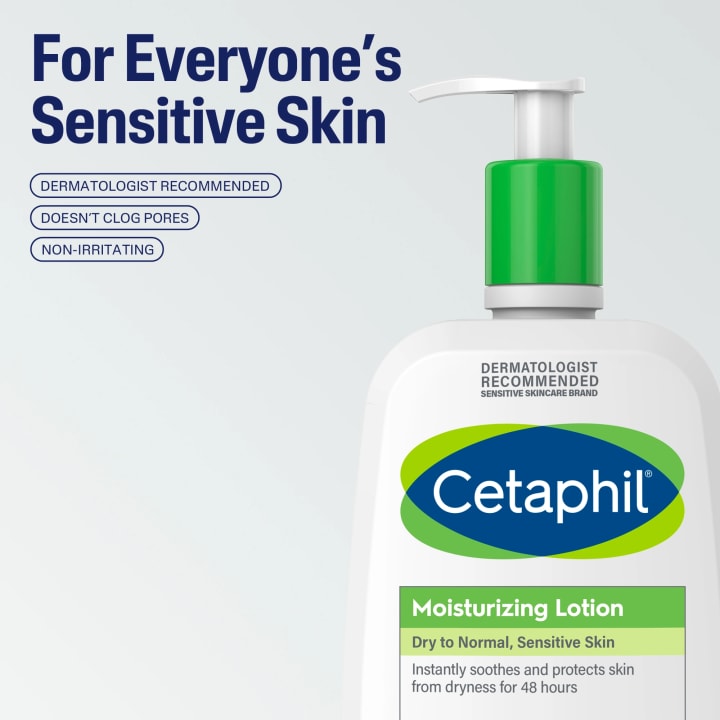 Cetaphil Moisturizing Lotion är en lätt lotion för ansikte och kropp som går snabbt in i huden och ger återfuktning i upp till 48 timmar. Berikad med niacinamid, pantenol och glycerin som är kliniskt bevisade att lugna, återfukta och skydda huden. Lotionen hjälper även till att stärka hudens naturliga fuktbarriär. Passar en normal, torr och känslig hud. 500 ml.