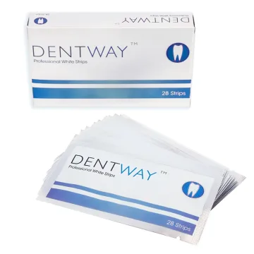 Dentway White Strips är snabb tandblekning som verkar på bara 20 minuter. Professionellt utvecklat av tandläkare och är anpassat för hemmatandblekning. Bleker gula tänder och avlägsnar fläckar från bland annat kaffe, te, vin eller tobak. En förpackning innehåller 14 X 2 stycken strips, vilket motsvarar 14 strips för övre tandraden och 14 strips för nedre. Behandlingen tar 20-30 minuter per gång.