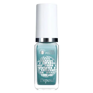 Depend Minilack är ett lättapplicerat nagellack i kompakt format, perfekt när du vill ha många olika nyanser. Specialdesignad pensel som är platt med rundad kant och extra följsam som gör det lätt att applicera. Flaskan är försedd med symboler som visar lackets täckningsgrad; täckande, halvtäckande eller transparent. Detta är nagellack i kollektionen Pre Party, med chrome och holografisk effekt. 5 ml.