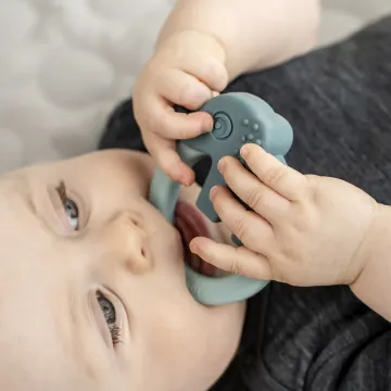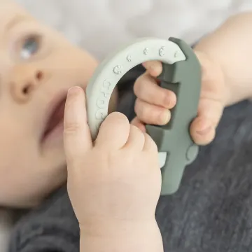 Done by Deer Teether Deer friends Green/Blue är ett set med två bitringar tillverkade i mjukt silikon som hjälper till att lugna och stimulera kliande tandkött. För extra lugnande effekt kan bitringarna ställas in i kylen. Designade för att passa små händer och stimulerar både syn-, mun- och taktila sinnen hos barnet. En bitring är i form av en söt elefant och den andra en rolig krokodil som även gör detta set till en perfekt leksak. 2-pack.