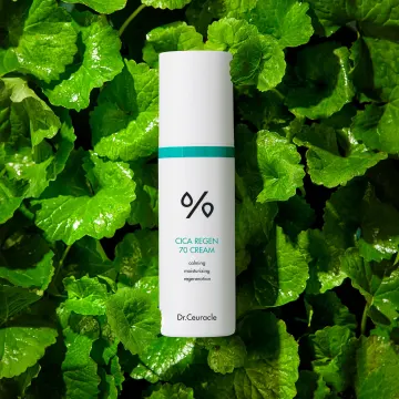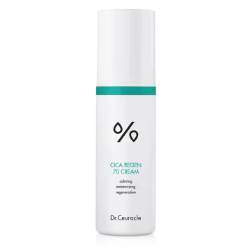 Dr. Ceuracle Cica Regen 70 Cream är en lystergivande ansiktskräm som bidrar till att reparera och balansera huden. Består till 70% av centella asiatica samt madecassoside och vitamin B5 med egenskaper som tillsammans kan bidra till att dämpa irritation och främja hudens naturliga reparationsförmåga samtidigt som huden blir återfuktad. Innehåller också ett groddkomplex bestående av grönkål, broccoli, bovete och kål som kan bidra till en känsla av ny frisk hud. Passar alla hudtyper och särskilt känslig hud. 50 gram.