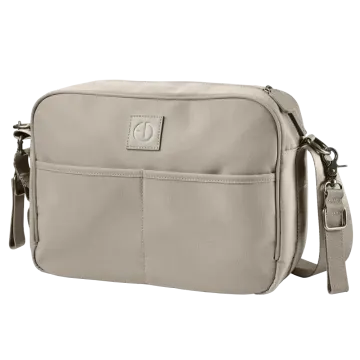 Elodie Changing Bag Crossbody Moonshell är en skötväska med fickor och fack för allt som behöver följa med på utflykten. Väskans insida erbjuder en praktisk organisering av blöjor, våtservetter och värdesaker samt en termoficka där vällingflaskan kan stå och hållas varm eller annan dryck kall. En vadderad skötbädd medföljer samt remmar för att kunna hänga skötväskan på vagnens handtag. Med extra lång axelrem för att också kunna bäras korsad över kroppen på axeln. Designad för att kunna användas även efter babyåren.