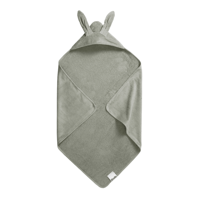 Elodie Details Hooded Towel Mineral Green Bunny är en mysig badcape för barn. Insidan i snabbabsorberande frotté och utsidan i mjuk och gosig velour är tillverkad i bomull certfierad enligt OEKO-TEX® Standard 100, klass 1 för babyprodukter. Kan tvättas i maskin på 40 grader. Passar att användas av barn mellan 0-3 år.
