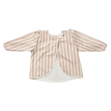 Elodie Longsleeved Baby Bib Candy Stripes är en haklapp med långa ärmar som hjälper till att täcka axlar och armar. Haklappen är enkel att ta av och på med mjuka kardborrefästen. Tillverkad i polyester med icke-absorberande beläggning utan PVC, som enkelt sköljs av och torkas ren på bara några minuter. Kan användas till frukost, lunch och middag, men också vid kreativ lek och projekt som kräver lite klädskydd. Passar barn mellan 1-3 år.