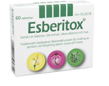 Använd alltid detta läkemedel exakt enligt beskrivning i denna bipacksedel eller enligt anvisningar från läkare. Rådfråga läkare eller annan sjukvårdspersonal om du är osäker. Rekommenderad dos är: Vuxna, äldre och barn över 12 år: 3 tabletter 3 gånger dagligen. Barn 8-12 år: 1-2 tabletter 3 gånger dagligen. Rekommenderas inte till barn under 8 år. Låt Esberitox smälta i munnen eller ta tabletterna med tillräcklig mängd vätska (företrädesvis ett glas vatten) på morgonen, mitt på dagen och på kvällen. Behandlingstid: Vid förkylningssymtom bör behandlingen starta så snabbt som möjligt. Esberitox ska inte användas längre än 10 dagar per behandlingstillfälle. Kontakta läkare eller annan sjukvårdspersonal om symtomen kvarstår efter 10 dagar.