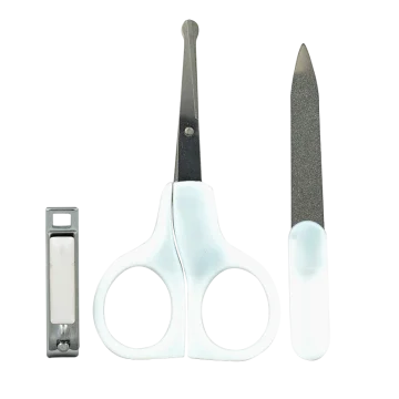 Kitet innehåller: 1 trubbig nagelsax 1 nagelfil 1 nagelklippare som gör det både enkelt och säkert för dig att klippa ditt barns naglar.