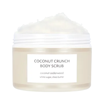 Estelle & Thild Coconut Crunch Body Scrub är en kroppsskrubb som skonsamt exfolierar huden. Produkten avlägsnar döda hudceller med hjälp av sockerkristaller, som även stimulerar blodcirkulationen. Huden lämnas silkeslen med hjälp av ekologiska ingredienser så som sheasmör och oljor. 200 g