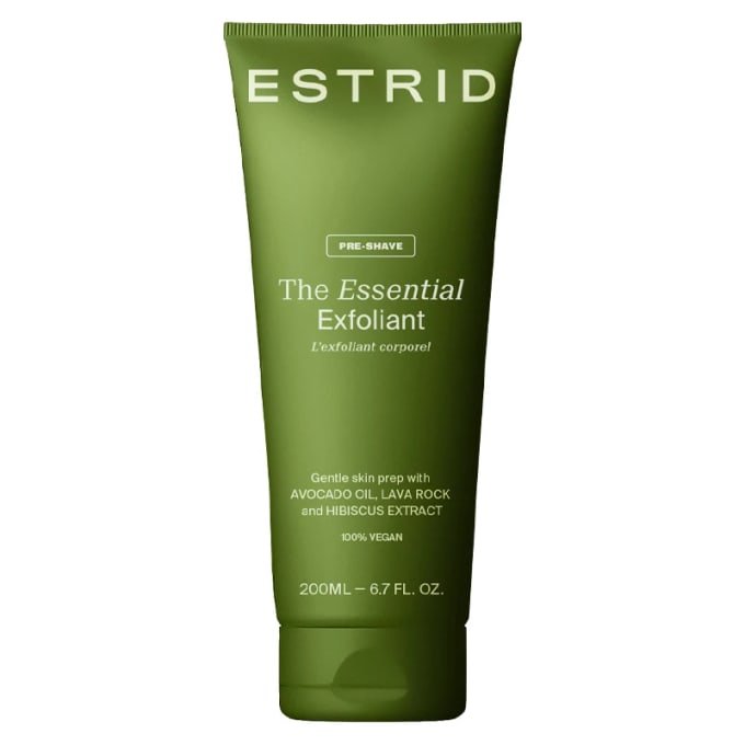 Estrid The Essential Exfoliant är en kroppsskrubb som kan användas inför rakning. Skrubben tar bort smuts, olja och döda hudceller på ett skonsamt sätt och minimerar inåtväxande hårstrån så att rakningen lämnar ett så effektivt resultat som möjligt. Peelingen innehåller lavasten och bambuextrakt för en skonsam exfoliering samt avokadoolja och extrakt från hibiskusblomma. Passar normal och känslig hud. Vegansk. 200 ml.