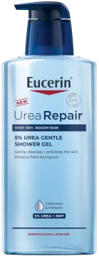 Eucerin UreaRepair 5% Urea Gentle Shower Gel är en rengörande duschgel med exfolierande egenskaper. Duschgelen hjälper till att exfoliera torr hud på ett varsamt sätt samtidigt som hudens naturliga skyddsbarriär bevaras. Den tvålfria formulan innehåller bland annat 5% Urea(karbamid). Efter användning känns huden mjukare och återställd. Oparfymerad. 400 ml.