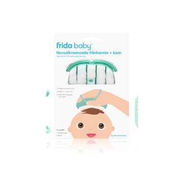 Frida Baby Huvudkramande Hårborste + Kam har en unik flexibel design som formar sig efter barnets huvud. Den mjuka borsten används för enhandsborstning, har mjuka borst och ett stabilt handgrepp utan glid. Kamen kan sedan användas som en stylingkam. Inklusive hårborste, kam och förvaringsfodral.