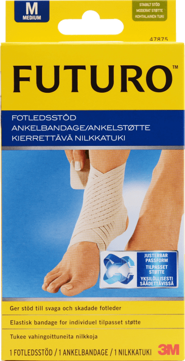 Futuro fotledsstöd ger stöd och avlastning när man vrickat foten, halkat eller trampat snett. Tunt och elastiskt material för att passa i skon. Passar både höger och vänster ankel. Finns i storlek small, medium och large. Justerbar kardborrelåsning. Storleksöversikt (mät omkrets runt ankeln): Small: 17.8-20.3 Medium: 20.3-22.9 Large: 22.9-25.4