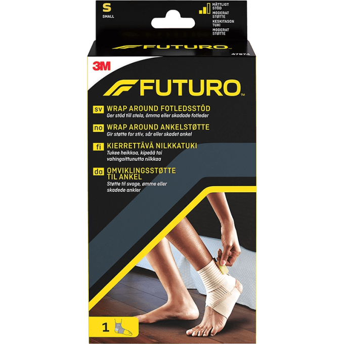 Futuro fotledsstöd ger stöd och avlastning när man vrickat foten, halkat eller trampat snett. Tunt och elastiskt material för att passa i skon. Passar både höger och vänster ankel. Finns i storlek small, medium och large. Justerbar kardborrelåsning. Storleksöversikt (mät omkrets runt ankeln): Small: 17.8-20.3 Medium: 20.3-22.9 Large: 22.9-25.4