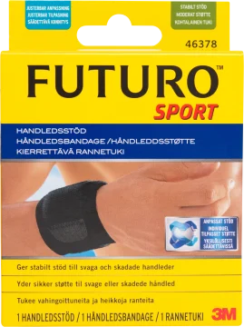 Futuro Handledsstöd är ett justerbart stöd för handled som är instabil, stukad, överansträngd, vid karpaltunnelsyndrom eller vid behov av extra stöd vid aktivitet. Stödet ger stabilitet och begränsad rörelse av handleden. Handtvätt. Svart. Passar för användning på både höger och vänster hand. Storlek: One size.
