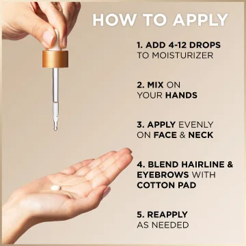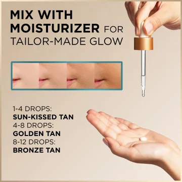 Blanda 4-12 droppar med en ansiktskräm. Applicera jämnt på ren hud i ansiktet och på halsen, Undvik ögonområdet. Tona noggrant ut vid hårfäste och ögonbryn med en bomullspad.Skyddar inte huden mot UV-strålar, Justera antalet droppar efter önskad intensitet, Fler antal droppar ger en mörkare effekt. *Garnier skin Active vitamin C (967591 6)