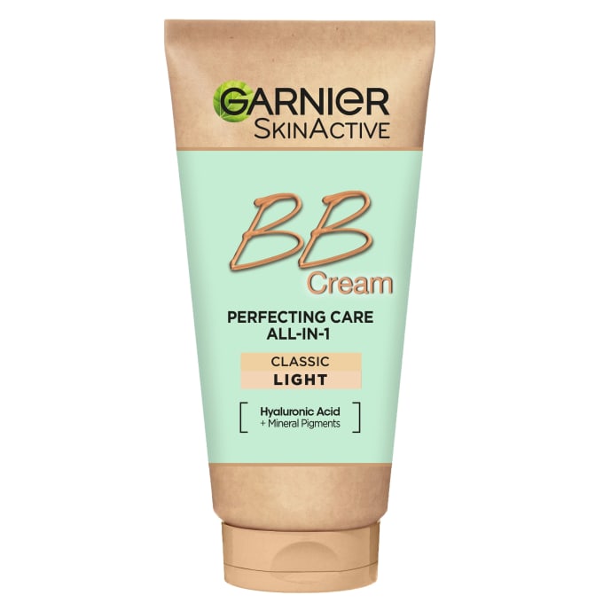 Garnier SkinActive BB Cream Classic Light är en vårdande och lystergivande allt-i-ett -BB-cream. Den har en lätt täckning som jämnar ut hudtonen och är berikad med återfuktande hyaluronsyra och lugnande aloe vera. BB-cremen har SPF 15 som skyddar huden mot UV-strålar. 50 ml.