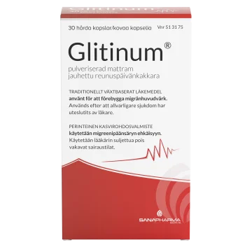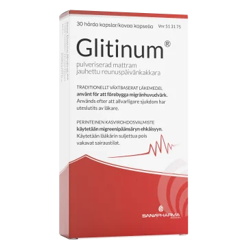 Glitinum® - enda receptfria läkemedlet som förebygger migrän. Glitinum innehåller extrakt av mattram (Tanacetum parthenium) som förebygger migrän. Tas dagligen för optimal effekt. För vuxna över 18 år.