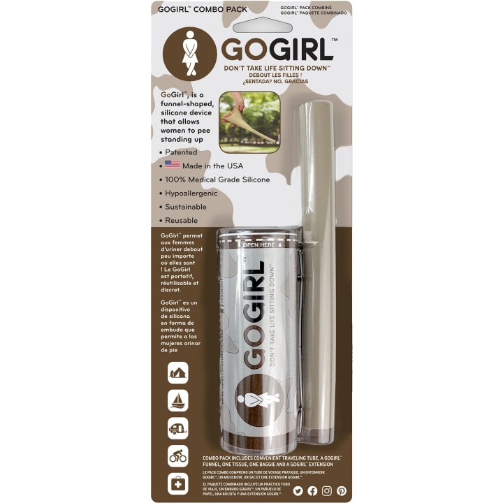 Go Girl erbjuder kisstrattar som tillåter tjejer att stå upp att kissa. Enkla att använda och lätta att rengöra. Välj bland olika färger och som set med inkluderad förlängning.