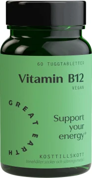 - Vitamin B12 bidrar bland annat till att minska trötthet och utmattning