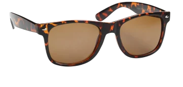 Haga Miami Havana Brown Lens är ett par solglasögon med 100% UVA och UVB-skydd. Bågarna är svarta bruna i klassiskt sköldpaddemönster. Glasögonens linser är bruna.