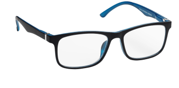 Haga Optik läsglasögon Stockholm Black/Blue en klassisk modell för perfekt seende på nära håll. Läsglasögonen har en tunn asfärisk lins för naturlig återgivning vid rätt anpassad styrka. Metalldelarna är antinickel-behandlade.