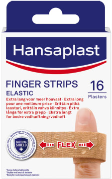 Hansaplast Elastic Finger Strips är ett flexibelt textilplåster som passar för att skydda mindre sår på fingrarna. Skyddar såret mot bakterier och verkar vattenavvisande. Lindas runt fingret två gånger för extra grepp. Stark häftförmåga. 16 plåster per förpackning