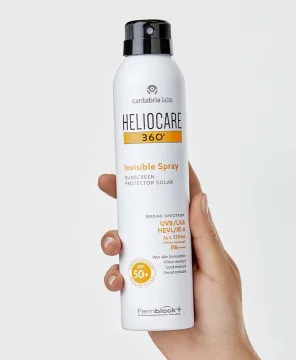 Heliocare Invisible Spray SPF 50+ är en kroppsspray som snabbt absorberas och lämnar en transparent finish. Smidig att applicera även på svåråtkomliga områden och kan användas på våt hud. Ger brett skydd mot solens UV-strålar, HEV och IR samtidigt som den hjälper till att skydda mot oxidativ stress. Vattenresistent. 200 ml.