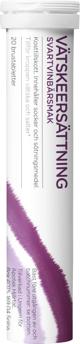 Hjärtats vätskeersättning med smak av svartvinbär tillför kroppen vätska och salter. Kolhydrat-elektrolytlösningar bidrar till att bibehålla uthållighetsprestationen under långvarig uthållighetsträning och förbättrar vattenupptaget vid fysisk träning. Innehåller socker och sötningsmedel. Innehåller inga animaliska ingredienser. Till vuxna och barn från 3 år. 20 brustabletter.