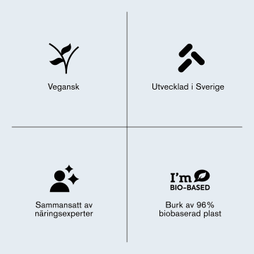 Rekommenderad dos bör inte överskridas. Bör inte användas som ett alternativ till en varierad och balanserad kost och en hälsosam livsstil. Förvaras torrt i rumstemperatur, ej i direkt solljus. Förvaras alltid utom räckhåll för små barn.