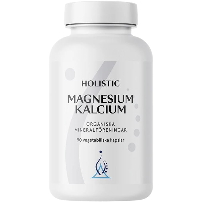 Holistic Magnesium/Kalcium 80/40 mg är ett kosttillskott med 80 mg magnesium och 40 mg kalcium från organiska mineralföreningar per kapsel. Magnesium bidrar bland annat till att minska trötthet och utmattning, det bidrar också till normal energiomsättning, muskelfunktion och till nervsystemets normala funktion. Kalcium bidrar till att bibehålla normala tänder och benstomme, samt till normal energiomsättning, blodkoagulation och till matsmältningsenzymernas normala funktion. Vegetabiliska kapslar. 90 st.