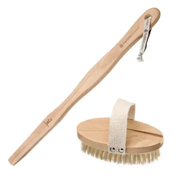 Borstvård: Efter användning, tag bort döda hudceller genom att slå lätt på borsten. Handtvätta borsten ibland med varmt vatten och tvål. Skölj därefter noga med vatten och låt borsten torka med borsten nedåt på en torr yta eller häng borsten på vägg för att torka. Använd på torr hud innan dusch/bad. Börja vid fötterna och borsta upp mot hjärtat. Använd svepande rörelser och lite tryck. Använd små cirkulära rörelser på mage och bröst. Använd inte på skadad hud. Avsluta med att skölja av huden med ljummet vatten.