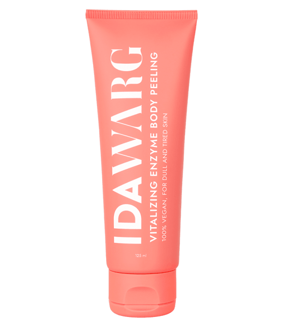 Ida Warg Vitalizing Enzyme Body Peel är en djuprengörande och exfolierande kroppspeeling för normal hud. Peelingen hjälper till att avlägsna döda hudceller både mekaniskt och kemiskt. Den jobbar med silica skrubbkorn samt AHA, PHA och enzymer från granatäpple. Peelingen innehåller även kråkbärsextrakt som har vitaliserande effekt på huden. Med en exotisk doft av ananas, persika, mandel och vanilj. Passar normal hud. Vegansk. 125 ml.