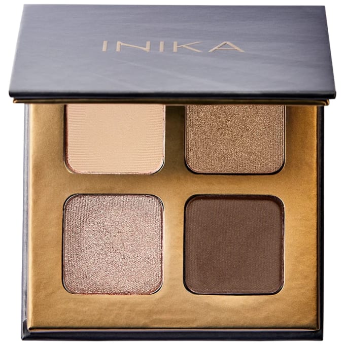 INIKA Eyeshadow Quad är en ögonskuggspalett med fyra ögonskuggor i kompletterande nyanser som kan användas både till vardagsmakeup och till festmakeup. Ögonskuggorna är högpigmenterade och innehåller rena mineralpigment som pressas till ett puder. Krämig puderformula berikad med extrakt från kakaofrö och karnaubavax som ger ett långvarigt resultat och passar känsliga ögon. Hållbar förpackning tillverkad av återvunnen kartong och aluminium. I locket finns en praktisk spegel som förenklar applicering och touch-ups på språng. Vegansk. 8 g.